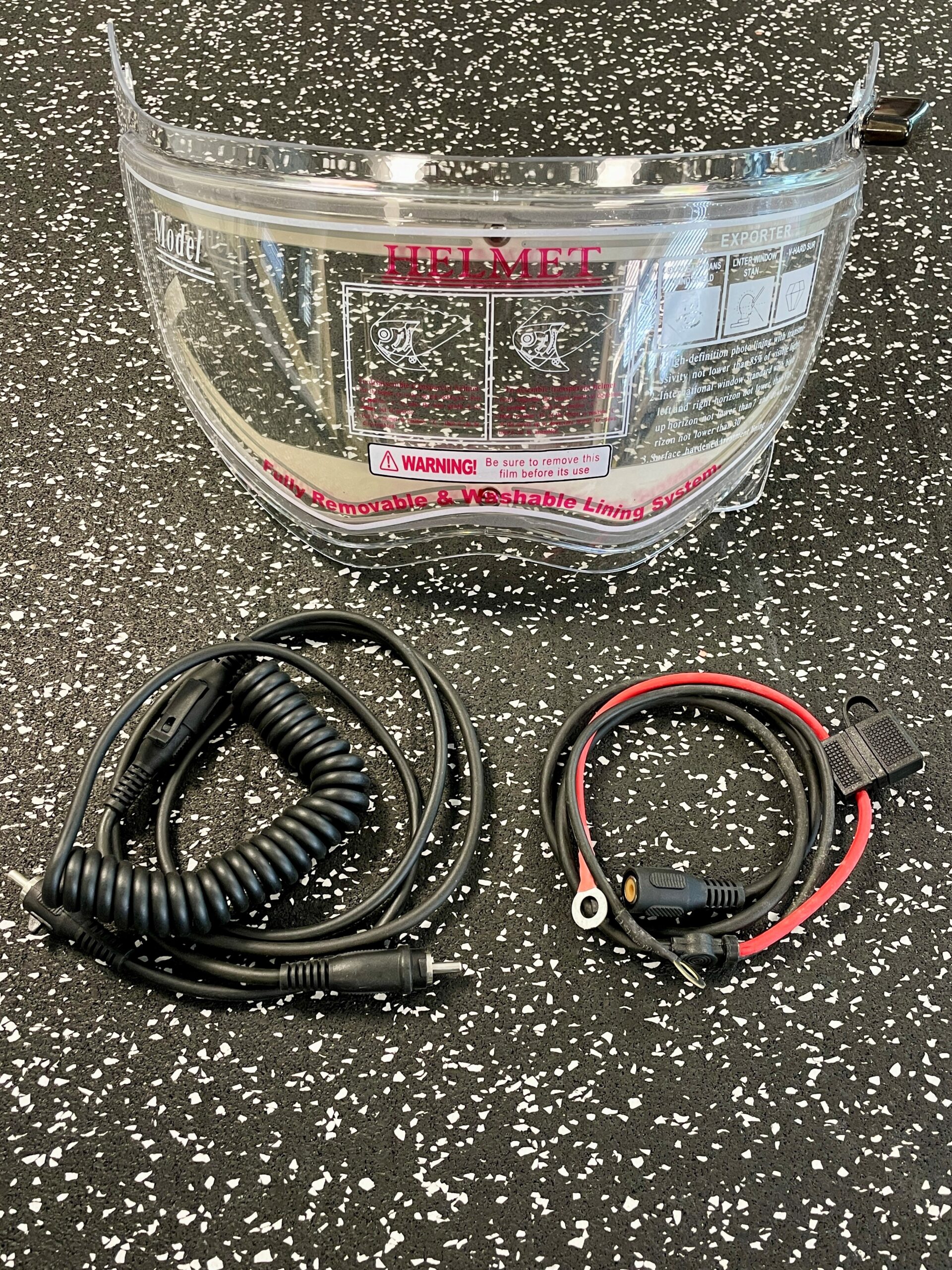 Snøscooter-hjelm på sitt aller beste, nå komplett med elektronisk visir! Denne modular-hjelmen har ripebestandig dobbelt antidugg-visir og leveres med elektrisk visir i tillegg til standard-visiret for fleksiblet bruksområde over flere årstider. Det følger med to visir i pakken, enkelt og dobbelt. I tillegg har vi satt sammen ei pakke med et komplett elektrisk visir og ledningssett(RCA). Det eneste du trenger i tillegg er strømforsyning, se tilbehør for alternativer. Hjelmen er godkjent for veibruk med enkelt visir, integrert pustemaske og det gule sol-visiret gir optimal kontrast mot snøen.